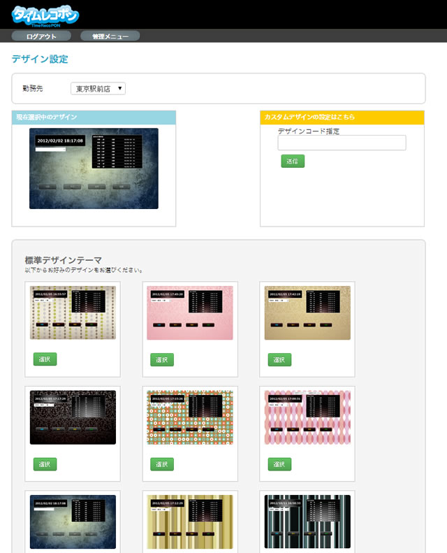 お店の雰囲気に合わせてタイムレコーダーのデザインを変更できます。